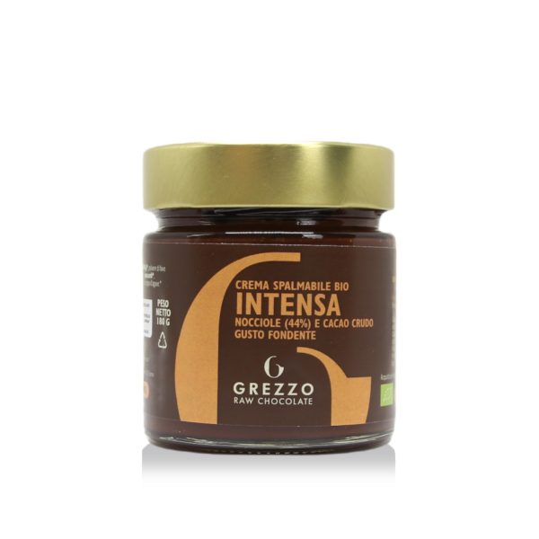 Intensa è la deliziosa crema spalmabile con nocciole, cacao crudo e zucchero di cocco, realizzata artigianalmente nel nostro laboratorio con le migliori materie prime.